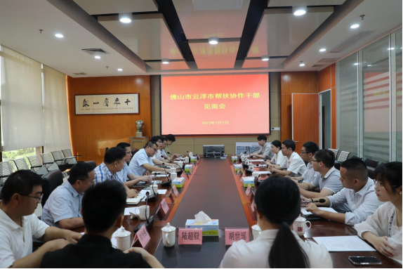 7月7日,佛山云浮两市帮扶协作干部见面会在佛山(云浮)产业转移工业园一楼会议室(以下简称园区)召开。佛山市-云浮市对口帮扶协作指挥部指挥长杨洪委,副指挥长李泽斌,云浮市委组织部部务委员孙宇飞,干部二科科长蔡常青等相关人员出席本次见面会。