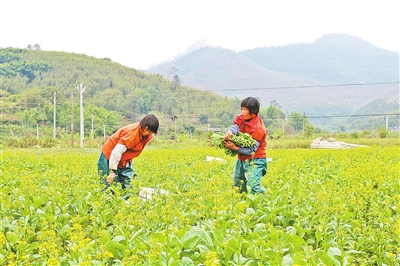 “一年之计在于春”。2月24日下午,新兴县太平镇社圩村的更绿(鸿丽)蔬菜种植基地,两名菜农在采摘菜心。初春时节,新兴县各地农民在田间地头忙碌起来,广袤的田野上到处呈现出一派人勤春早的景象。(通讯员 黎居雄 摄影报道)