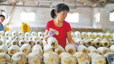 近日,记者走进新兴县簕竹镇非雷村,发现进村处的鸡舍发生了大变样,原本的鸡舍内,一列列菇菌包摆放整齐,菌包两端的秀珍菇竞相生长,旁边的工作人员正在小心翼翼地把菇摘下(如图),在另一边,工作人员忙碌着为新一批的蘑菇接种……原来,昔日充斥着饲料、粪便气味的鸡舍早已被清除,如今已转变成种植蘑菇的“秀珍菇”房。