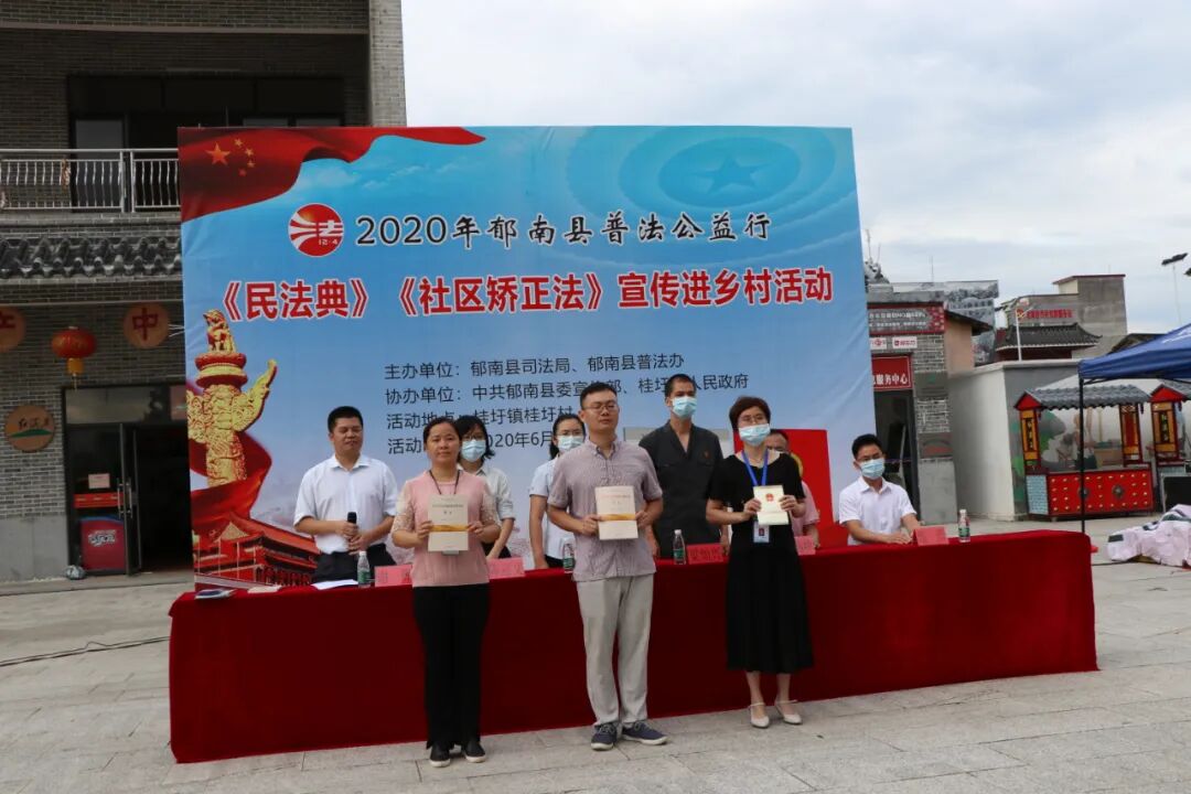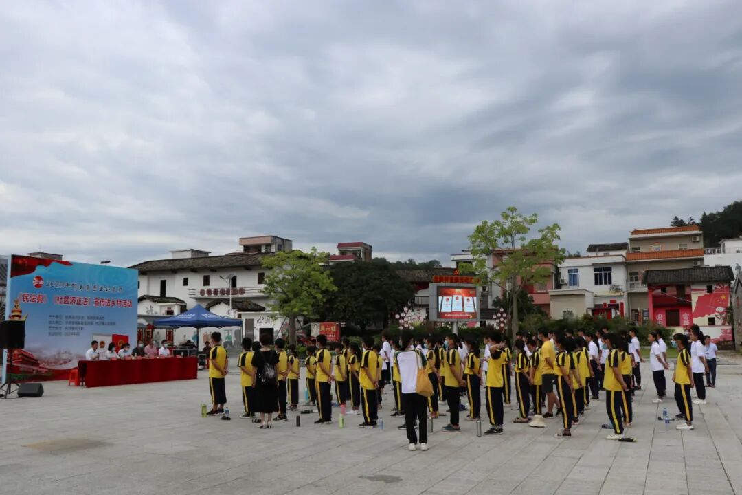 6月19日上午,郁南县司法局、县普法办在桂圩镇桂圩村委龙岗村,联合举办主题为“乡村振兴•法治同行”—2020年郁南县普法公益行之《民法典》《社区矫正法》宣传进乡村活动,现场共组织了约150名群众、学生参加。