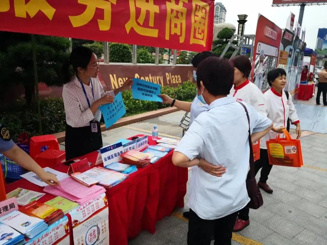 9月30日下午,由中共云城区委组织部、云城区普法办、云城区司法局和云城街道党工委联合主办的“党群服务进商圈·共筑和谐迎双节”暨云城区《民法典》宣传活动,在城区地理位置优越、城区新晋人气“打卡”热点的人气商圈云浮新世纪广场举行,活动现场共派出学法纪念品约300份、《民法典》宣传册子约600份、其余各种普法宣传资料约500份。通过这次普法宣传活动,进一步提升普法的影响力,在全区营造尊法学法守法用法的浓厚法治氛围。
