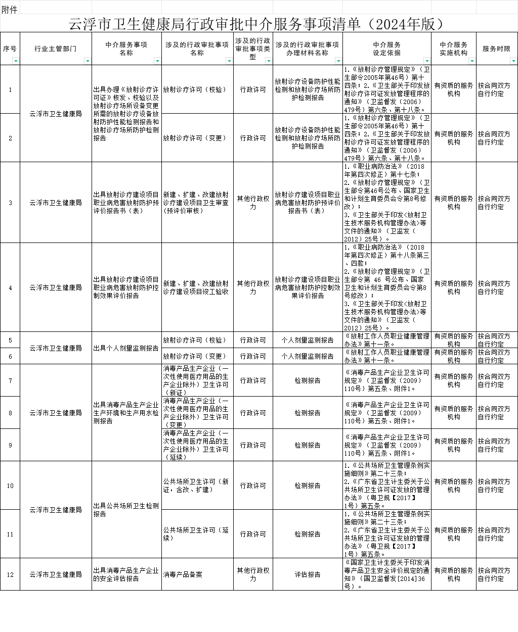 云浮市卫生健康局行政审批中介服务事项清单(2024年版)
