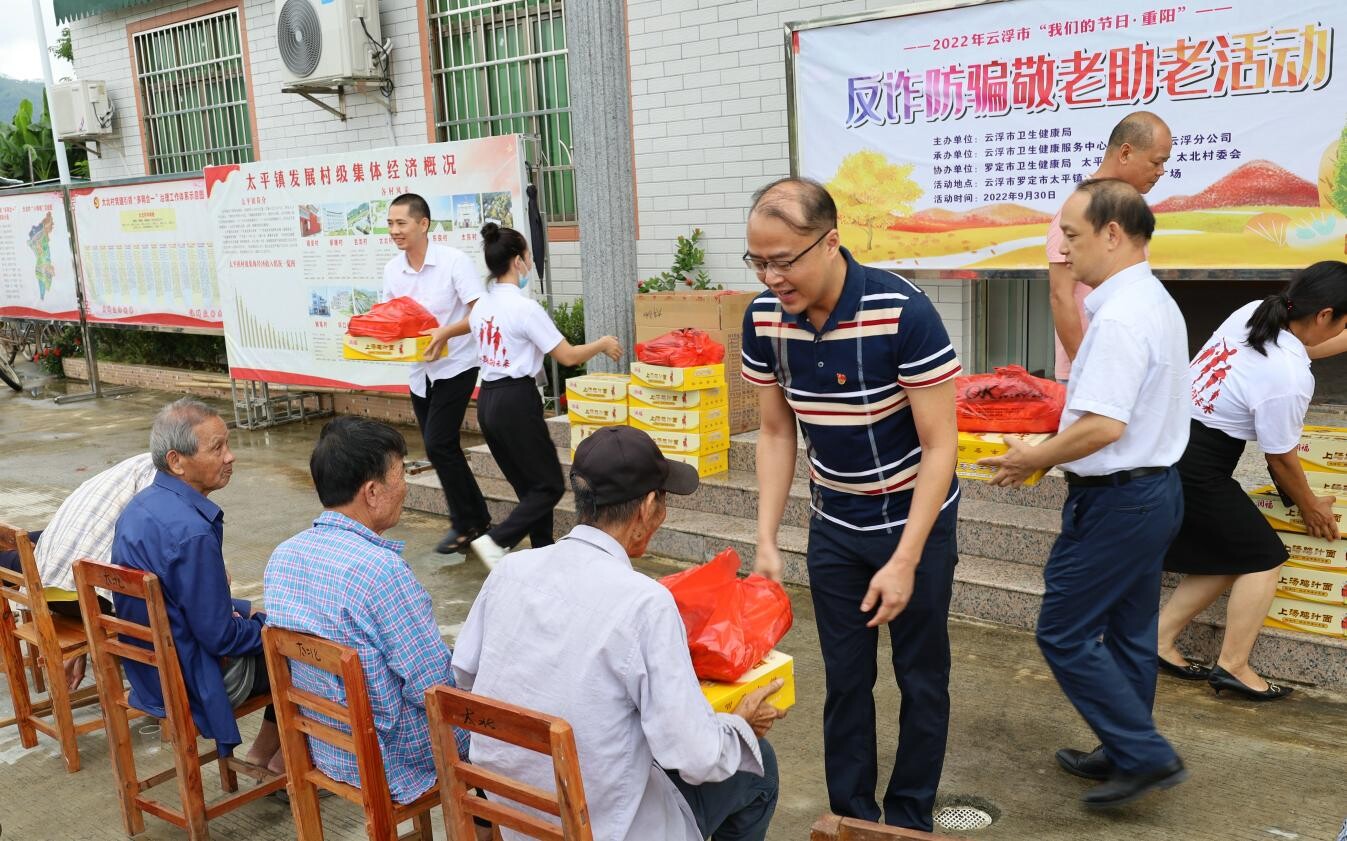 市卫生健康局组织志愿服务者和“银龄安康行动”服务专员进民营医院、进农村宣传涉老反诈防骗知识。在某民营医院,志愿服务者向老年病人讲述涉及养老诈骗问题的“套路”手段,强调要避开伪劣保健品和代办养老保险等诈骗陷阱,叮嘱老年人在日常生活中不轻信、不透露、不转账,避免上当受骗,守好自己的“养老钱”。在罗定市太平镇太北村,志愿服务者用通俗易懂的语言,向老年村民宣传正确就医渠道,讲解老年健康相关的医疗政策,科普无资质医疗机构、无行医资质相关人员擅自为老年人开展诊疗活动对老年人合法权益和身体健康的危害;提醒老年村民注意防范不熟悉但过分热情进行产品、理财等推销的“好心人”,投资健康产品前多参考家人意见,理性消费。在活动现场,还向老人们致以节日的祝福和问候,派发重阳节礼品和宣传资料。