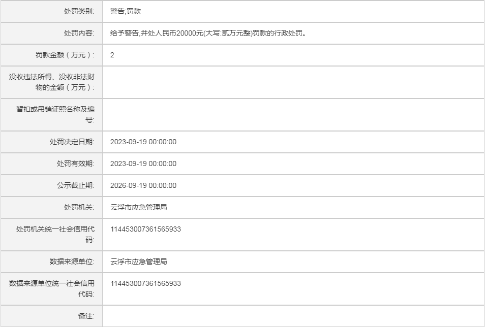 (云)应急罚〔2024〕33号中电建(云浮)绿色矿业有限公司行政处罚案
