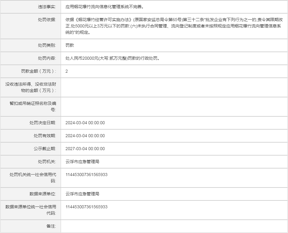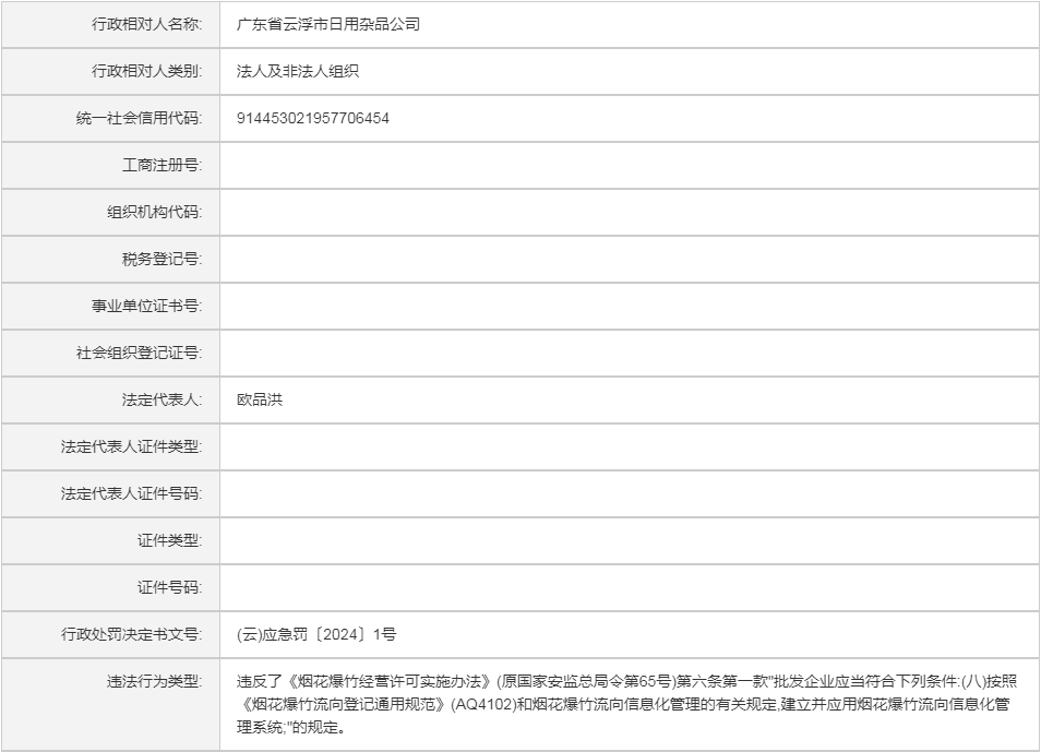 (云)应急罚〔2024〕1号广东省云浮市日用杂品公司行政处罚案